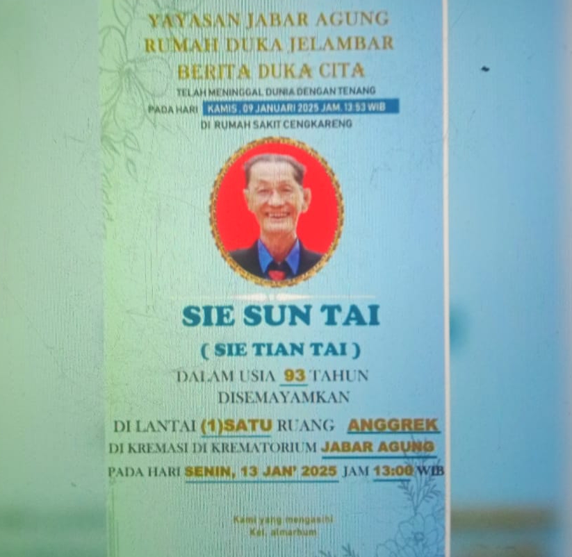 G.W.I.DPC Siak, Turut Berduka Cita Atas Meninggalnya Bapak Sie Sun tai (Sie Tian tai)