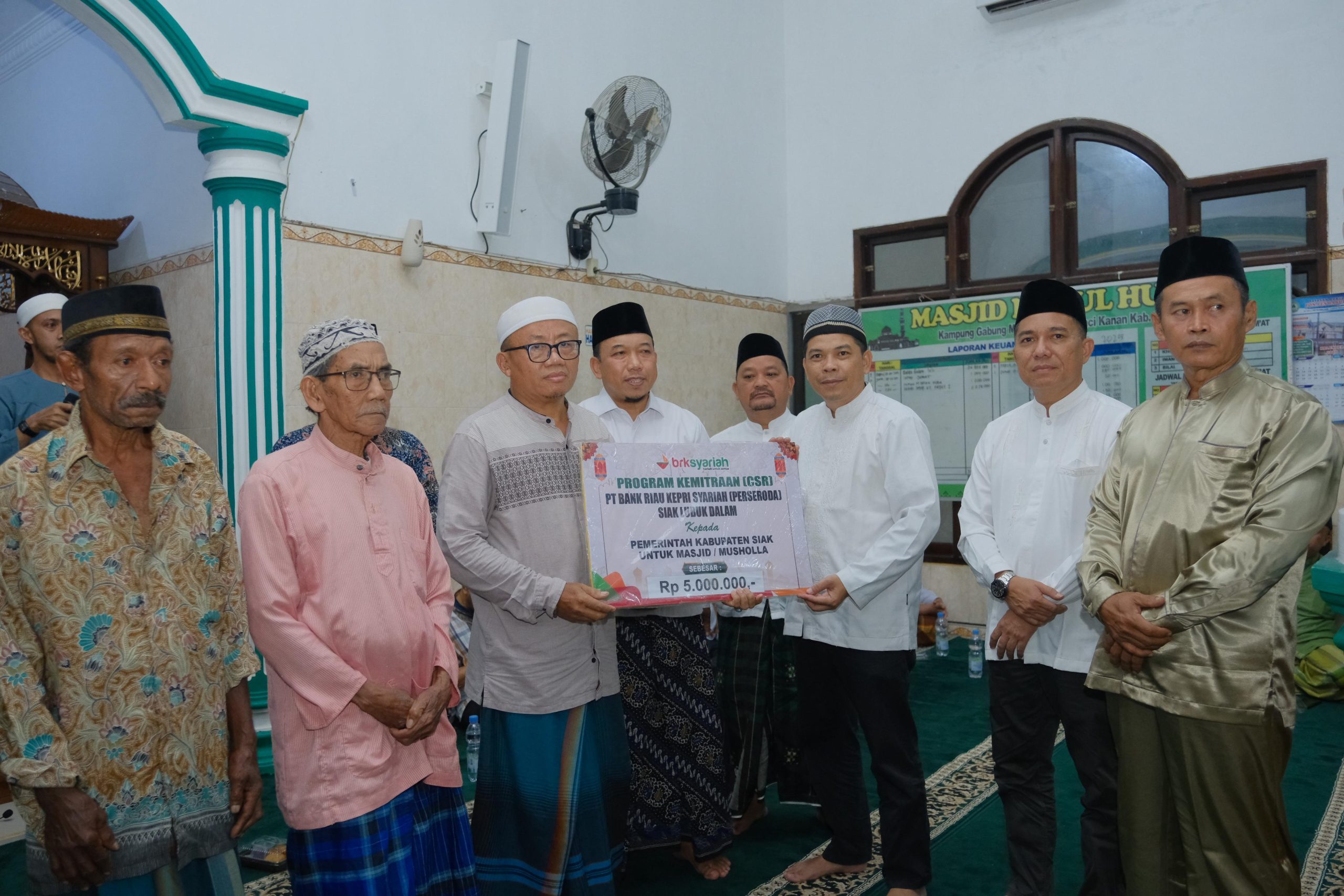 Dalam kegiatan ini juga diserahkan bantuan CSR dari Bank Riau Kepri Syariah kepada Pemkab Siak untuk masjid sebesar Rp5 juta, serta paket sembako senilai total Rp 4.250.000 kepada lima orang penerima.