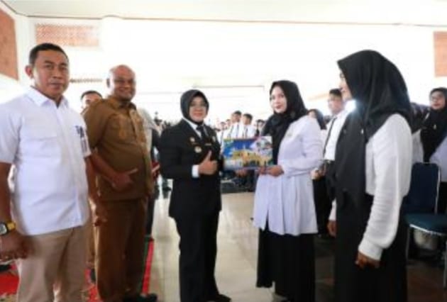 JEJAKSUARA.COM (Siak) -Bupati Siak Afni Zulkifli menyerahkan Surat Keputusan (SK) pengangkatan Calon Pegawai Negeri Sipil (CPNS) dan Pegawai Pemerintah Dengan Perjanjian Kerja (PPPK) di lingkungan Kabupaten Siak.