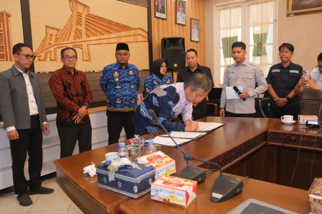 JEJAKSUARA.COM (Siak) – Bupati dan Wakil bupati Siak, Afni Zulkifli dan Syamsurizal menyaksikan penandatanganan Nota Kesepahaman…