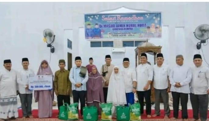 Safari Ramadhan Dimasjid Jamik kampung Rempak, Wabup Siak Husni Merza Serahkan bantuan sosial dan santuni anak yatim