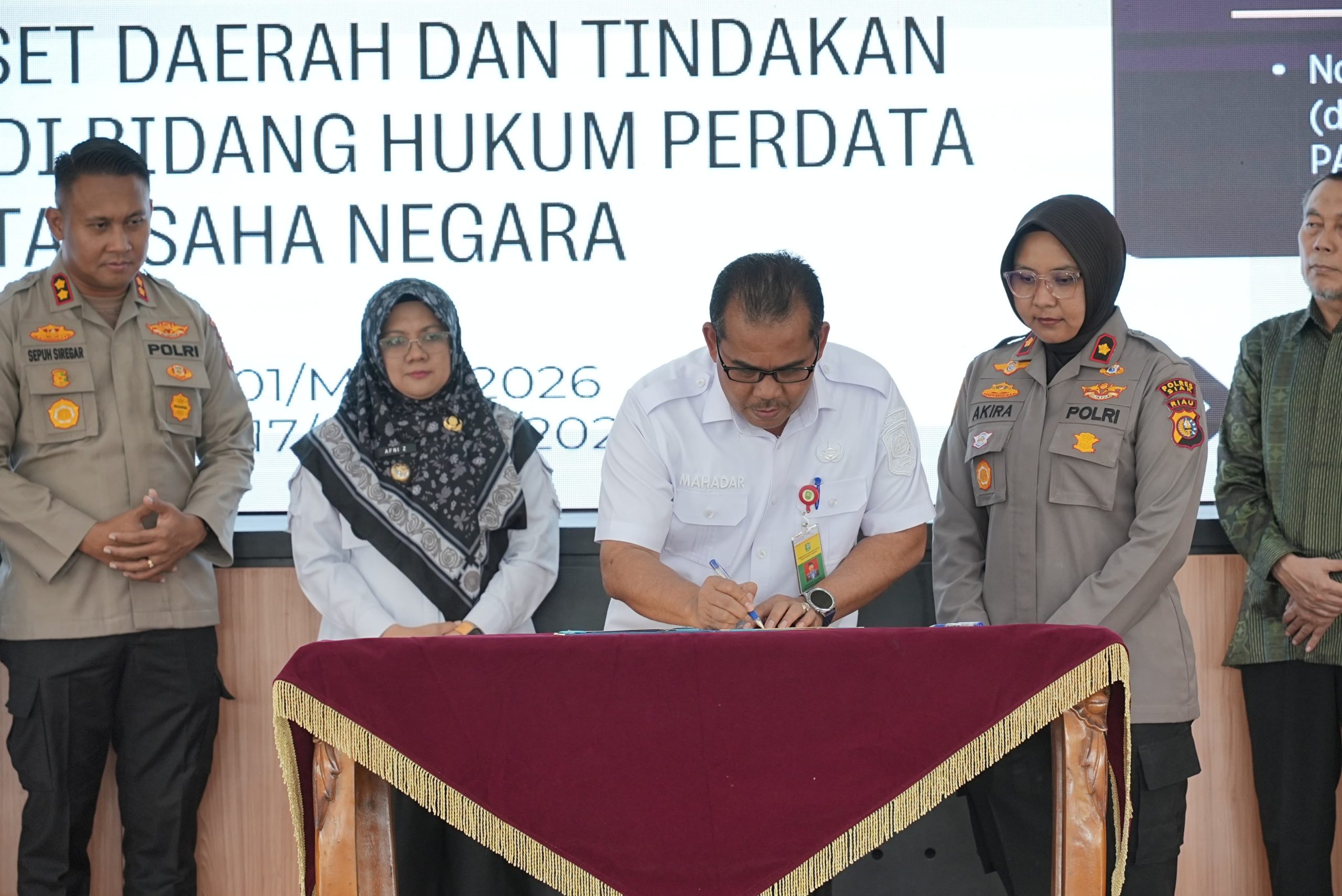 - Nota Kesepakatan antara Pemerintah Kabupaten Siak dengan Polres Siak, tentang Penyuluhan Hukum dan Peran serta Penyusunan Produk Hukum Daerah.